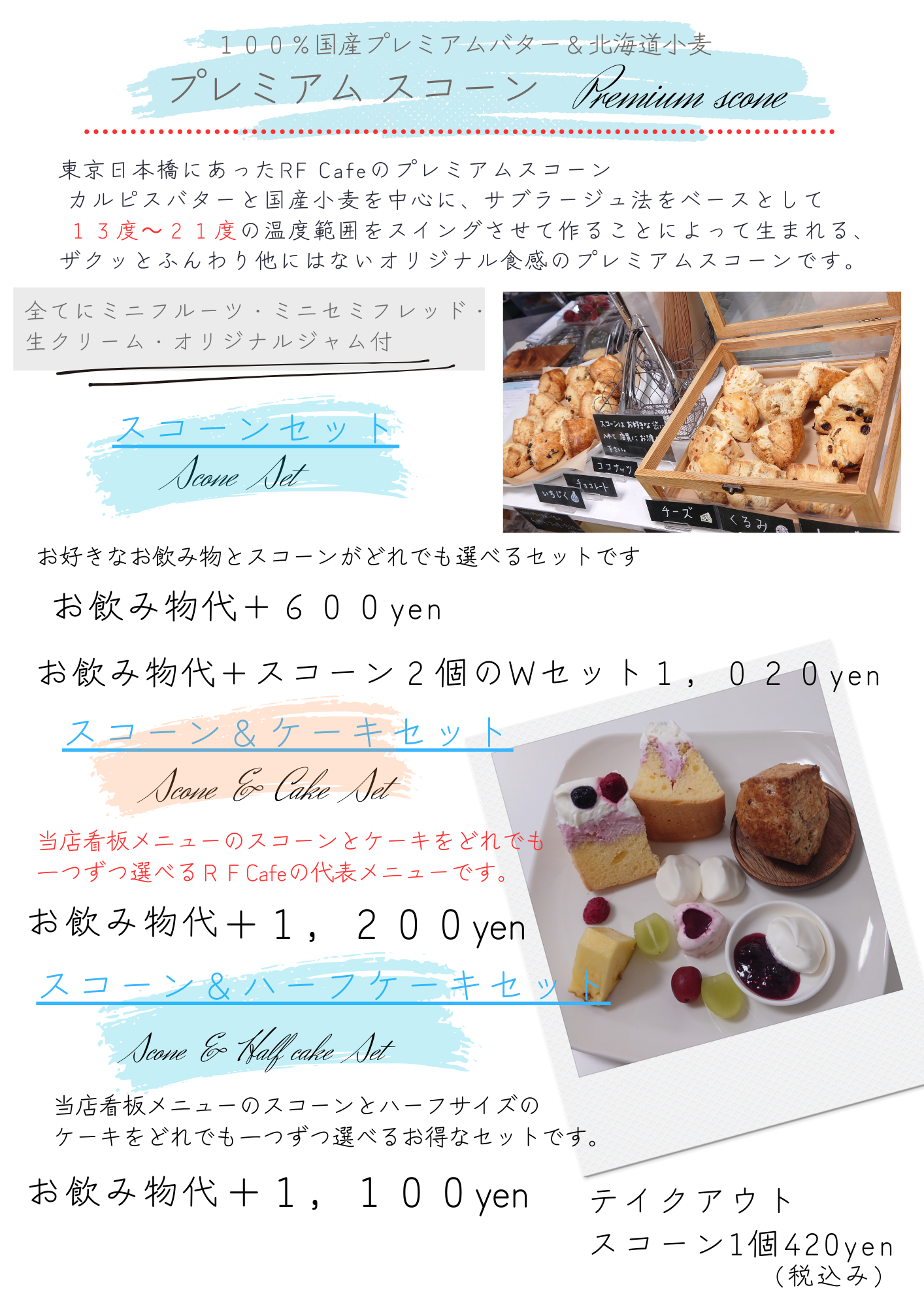 カルピスバターと国産小麦を使った、他にはない食感のザクっとふんわりしたプレミアムスコーンと手作りケーキに焼き菓子、